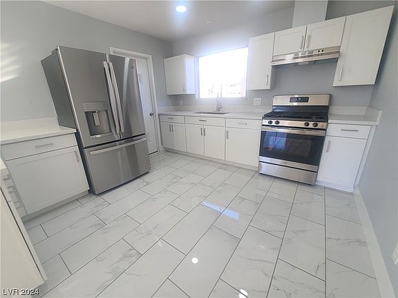 This is a rare find: a completely remodeled 4-bedroom home that is absolutely beautiful. It's like a gem in the middle of the desert. The house features nice marble-like tile flooring throughout, as well as new carpet in the bedrooms. The entire inside and outside of the house has been freshly painted to enhance your enjoyment of the home. The kitchen boasts nice cabinets and quartz countertops, along with an elegant breakfast nook that includes a modern stainless steel stove. Each bedroom includes spacious closets and new ceiling fans, and the bathrooms have new tile on the shower walls, new vanities, and lamps. There is also a big backyard and much more to see. Come and take a look for yourself!