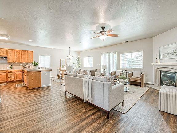 This beautifully maintained single-story home offers a bright, open floor plan in a highly desirable neighborhood within the award-winning Clovis School District. The spacious kitchen features a gas cook top, breakfast bar, and large dining area that flows seamlessly into the family room with a cozy gas fireplace perfect for entertaining or relaxing evenings at home. In addition to three well-appointed bedrooms, this home includes a versatile flex room/office and a separate small computer room ideal for work, study, or hobbies. The large backyard is beautifully landscaped with mature trees and a generous covered patio for outdoor dining or gatherings. With newer flooring throughout and a spacious lot, this home is move-in ready and designed for comfortable, flexible living.
