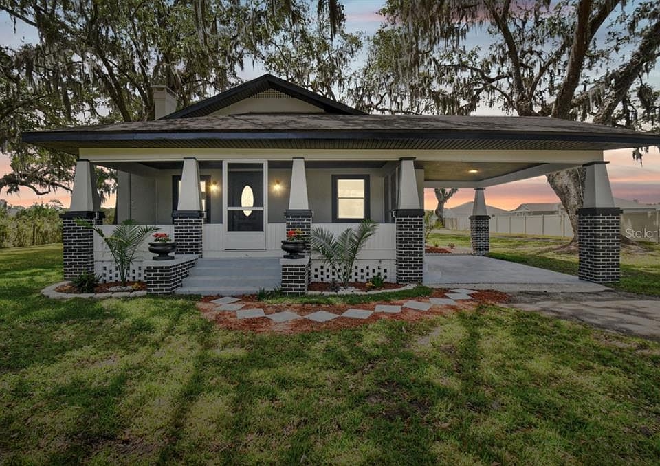 Welcome to this exquisite Lakeland Bungalow-style residence, nestled on a sprawling .91-acre lot. Boasting three generously sized bedrooms and two expansive bathrooms, this home offers unparalleled privacy, strategically positioned away from the road, ensuring the tranquility and seclusion you deserve. Impeccably maintained, this residence exudes elegance and sophistication, showcasing recent upgrades that include a brand-new roof, flooring throughout, interior and exterior paint, screening for both front and back patios, as well as new kitchen cabinetry and granite countertops. Adorned with stainless steel appliances and tasteful recessed lighting, the kitchen seamlessly blends functionality with modern aesthetics. Upon entry, one is greeted by soaring ceilings accentuated by rich espresso-colored beams, framing the living room and its centerpiece stone fireplace. Ideal for cozy winter evenings, this space epitomizes warmth and comfort, a testament to the thoughtful attention to detail evident throughout the property. Indulge in outdoor entertaining on the fully screened front and back Patio’s, perfect for hosting gatherings and summer barbecues. Beyond, a convenient sidewalk leads to a spacious concrete parking pad at the rear of the property, providing ample space for storing recreational vehicles, boats, or additional storage sheds. Set against the backdrop of lush landscaping and encompassed by a fully fenced perimeter, this residence offers limitless potential for customization and expansion, with no HOA or CDD fees to restrict your vision. With every detail meticulously attended to, this home epitomizes the epitome of refined living. Don't miss the opportunity to make this remarkable property your own. Schedule a viewing today and seize the chance to experience luxury living at its finest before it's too late.