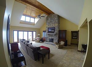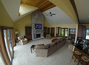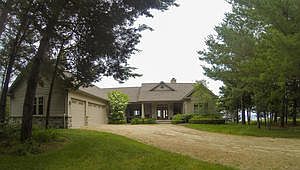 THIS MAGNIFICANT CUSTOM-BUILT HOME IS NESTLED ON A BEAUTIFUL SUGAR SAND BEACH AMIDST ONE OF THE MOST PRISTINE SETTINGS ON THE EASTERN SHORE... Highly desireable features redefine class throughout this lakefront home. In the master bedroom, greet each sunrise through the panoramic cathedral windows and enjoy the evening in front of the beautiful granite fireplace. A custom glass and ceramic shower highlights the adjoined private bathroom. The two additional bedrooms, one with a lake view, offer space and comfort with a shared bathroom and twin walk-in closets. The 14 x 32 finished bonus room above the three-car garage maximizes sleeping and entertainment space, or can even function as an income generating rental space! The spectacular kitchen features custom cherry cabinetry, gorgous granite counter tops, and stainless steel appliances. A custom-built wet bar seamlessly combines the kitchen and spacious living room which features high vaulted ceilings and a majestic fireplace perfect for creating an Up North ambiance. Laundering is simplified in the 8 x 10 main floor laundry room and features plenty of built-in cabinetry. The entire house comes wired inside and out for all of your electronics and entertainment needs including a remote controlled sound system in every room, and even a drop down movie screen outdoors on the maintenence-free deck! A beautiful, winding river through the property lends to the majestic overall atmosphere. Overall, this property is the perfect combination of luxurious form and practical functionality. Priced well below replacement cost!