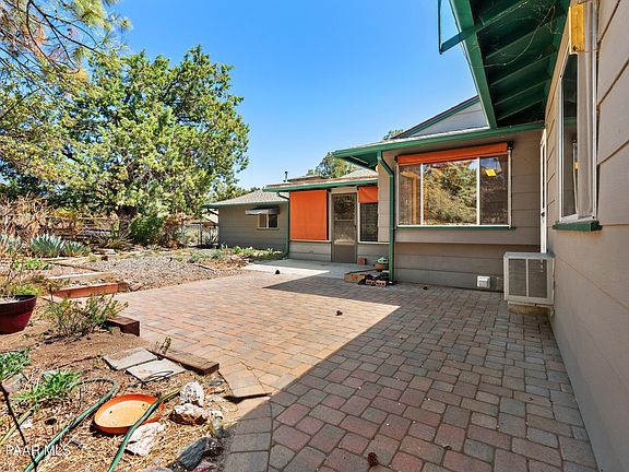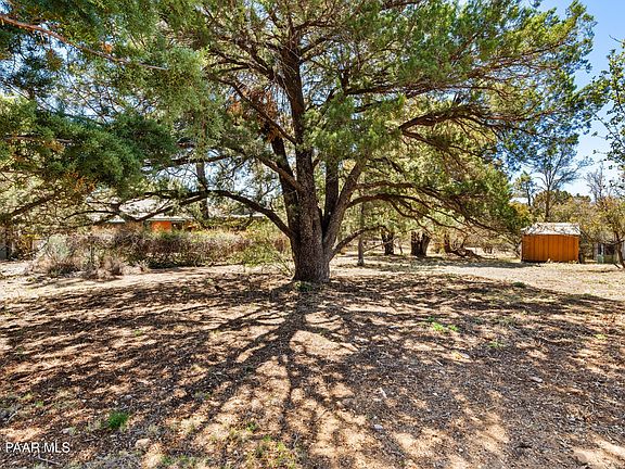 A peaceful neighborhood close to Prescott shows pride of ownership without the restrictions of an HOA. Roof replaced in 2023. Heating and A/C replaced in 2024. Enjoy this beautiful level lot full of native junipers, pines, various cacti & evergreen scrubs. This lovely home has a 70's / 80's vibe. The house with its 2 car garage is situated towards the middle of the lot which offers owners plenty of privacy under mature evergreen trees. While the perimeter of this .45 acre lot is partially fenced on 3 sides, a large fenced courtyard has been created for relaxing and/or gardening.