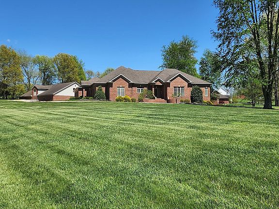 Call OWNER, 812-630-0122 for appt./private showing! Pre-Approval Required. Buyer's Agent Welcome, 2.3%. Great opportunity to own this quality-built Ranch-Style home just minutes from Jasper, IN. With 6146 sq.ft., this stunning 4/bd, 3.5/ba home has a large/deep 3-car attached garage and is nestled on a 2.18 acre corner lot with a bonus 54x80 detached storage/workshop bldg. with 1/2 bath and 2 large garage doors. The home's kitchen showcases custom built cabinets, a 13 ft. island for ample seating, while another kitchen island is perfect for food prep with close access to a double-door walk-in pantry. Both Quartz & solid-surface countertops and 18"x18" porcelain tile floors adorn this large area including other amenities/appliances. The wide open floor plan creates a perfect setting for friends and family to gather. The main floor also conveniently includes the Primary bedroom suite featuring an 18 ft. long walk-in closet, sit-down vanity area, jetted tub, tiled 2-head shower, towel warming drawer, and thermostat-controlled tiled floor. In addition, there's a 2nd bedroom with walk-in closet and full bathroom, a laundry room, study, a 1/2 bath, message center, 2 coat/storage closets, 9'3" ceilings and mainly 3' wide doors. Don't forget the full walk-out basement entertainment space, along with the sizable 3rd and 4th bedrooms, bathroom & tons of storage. The property boasts of 3 enjoyable outdoor patio levels in the back & side yard.
