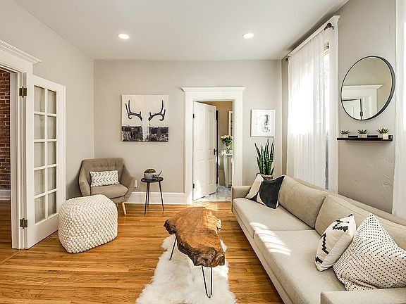 Rare corner lot Denver Square one block from Highlands Square. Beautifully maintained historic "Hayes Home" with modern flow and upgrades, including finished basement, exposed brick walls, built-in shelving, media room, office, custom closets, fully landscaped and irrigated front and rear landscaping (with cafe lights and custom, illuminated steel panel art installation), landscape lighting, water feature, and perennial flowers. Kitchen upgrades include Wolf range stove and premium appliances. Original clawfoot tubs, travertine and carrara marble flooring in bathrooms. All new mechanical systems including high-efficiency furnace and A/C. Easy walk to sushi, cafes, bistros, yoga studios and boutiques along 32nd Ave. Interior comforts include air conditioning, whole-home humidifier, blown-insulation, modern windows, and draft sealing. Two-car garage, two driveway parking spaces and permitted street parking make parking in the Highlands a breeze. Backyard is fenced and both pet and child friendly. Commuter friendly, with two bus lines serving downtown within a short walk. A quiet sanctuary in one of Denver's most desirable neighborhoods.