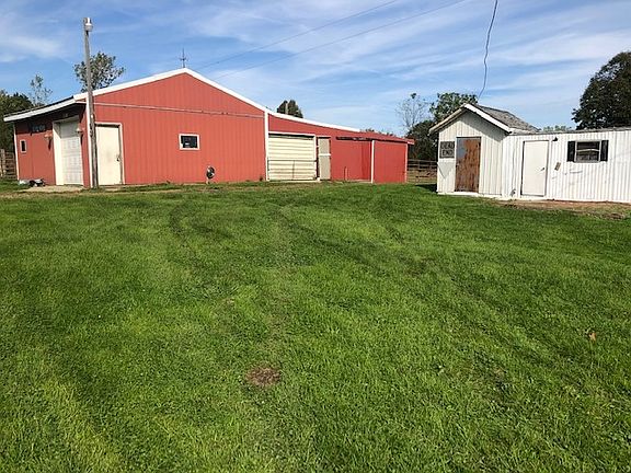 4 bedroom 1 bath farm house on 7.72 acres in a rural setting on the east side of Steuben County also known as York. 32x54 pole barn with electric and water also has 4 stalls,hay room, garage area with overhead door, and a run-in stall area. 3+ acres are fenced and ready for your farm animals. Home had a roof approximately 8 years ago and a propane furnace installed a few years ago. Also has a wood burning stove in the family room. Newer windows have been installed. Stove, refrigerator, washer, dryer and another refrigerator and 2 freezers on the back porch come with the property. Cash or conventional loan only property is being sold as-is
