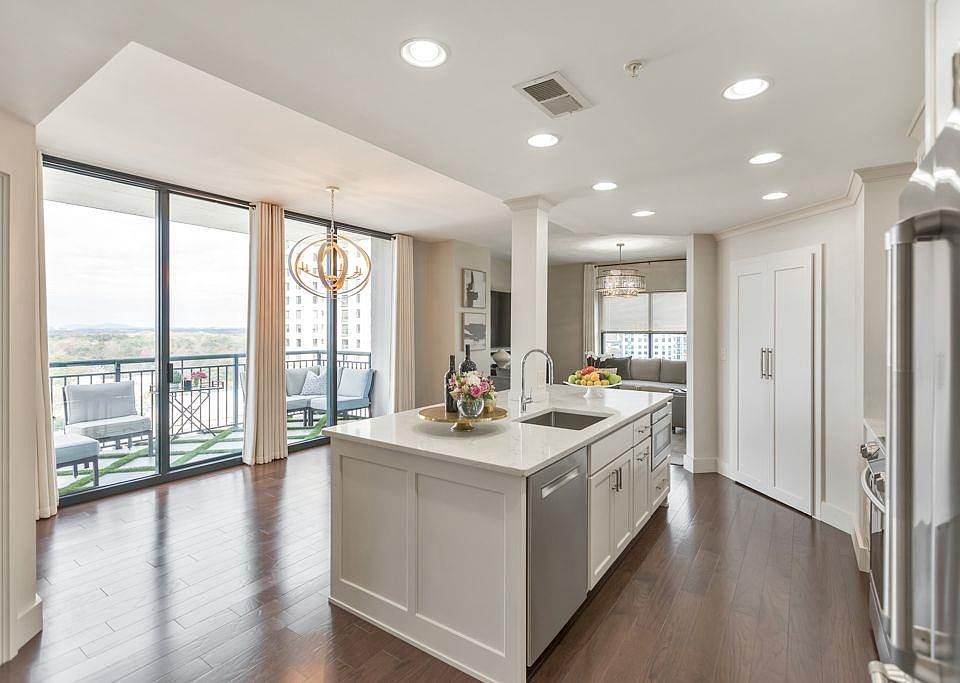 Enjoy the best that the heart of Buckhead has to offer in an amenity packed building! This completely updated 2 bed / 2 bath one-of-a-kind gem is a corner unit with windows on both sides that overlook the beautiful views of Buckhead. The open floor plan makes for easy living. Custom closets throughout are great for storage! The immaculate kitchen boasts an expansive island with a breakfast bar, marble counters, stainless steel appliances & sink, custom pantry, and soft-close drawers. The primary suite features a stunning chandelier with a renovated bathroom that has a luxurious shower, marble floors, and custom closets. The secondary bedroom also offers a beautifully updated bath and custom closet. Watch the breathtaking sunsets out on the spacious balcony! Amenities include a 24 hour concierge, pool, full service gym, sauna, business center, media room, club room, and a grill patio & terrace. Two deeded parking spaces. Located in a desirable location less than a block away from St Regis, Whole Foods, Chops & Lobster Bar, Two Buckhead Plaza, Buckhead Village Shopping, Fetch Dog Park, and so much more!