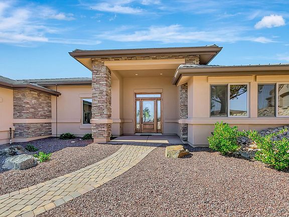 Beautiful single level CUSTOM home built in 2016 by renowned Mike Enders (Benttree Custom Homes) The single level home offers main living 11 ft height ceilings. Stunning entry, with a delightful reading nook, sitting area. The Family Room boasts a large fireplace, indoor outdoor entertaining area. The rear patio with its pony wall covered and uncovered relaxing space. Views of the National Forest across the Blvd provide ample opportunity to watch wildlife from your back porch. The master suite offers comfortable respite settling in after a hike on the Ranch at Prescott community path, a stones throw to Shops, Trader Joe's, Costco, Restaurants and More. The split floor plan is ideal, and all bedrooms are oversized. Upgraded kitchen WOW!