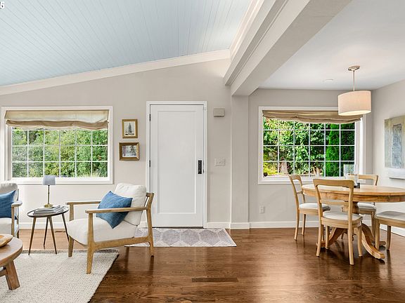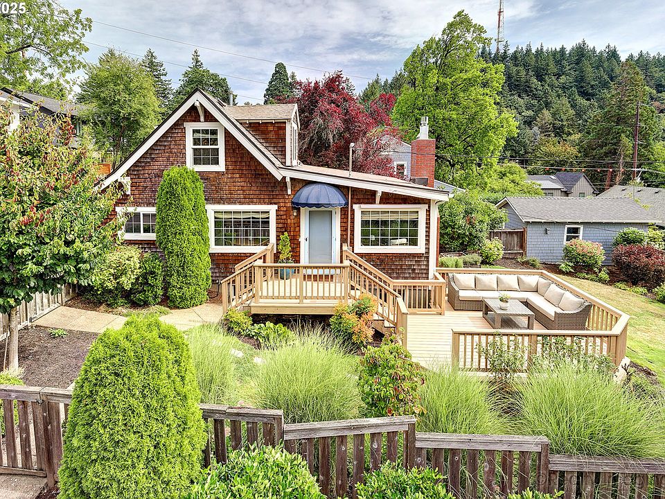 Open Sunday 11/16/2026 from 1:00pm to 3:30pm A special charming and updated cottage style traditional with coastal flair nestled in Portland's West Hills with expansive territorial and valley views. All on a neat corner lot.Great floor plan with open flow and rich dark wood floors, designer touches and lovely built in features. Cook's kitchen with granite counters,stainless appliances including a built in Wolf gas range. Family room off kitchen with vaulted ceiling and skylights. Spacious living and dining room with view to the southwest Handsome fireplace and detailing in living room. Two inviting bedroom suites with beautiful baths with high end finishes. Security System and A/C on the main floor.Basement offers abundant storage and laundry area with great potenial including a separate entrance. Exterior has expansive deck space for entertaining overlooking wonderful fully fenced yard and garden spaces including raised beds.Parking pad for two cars with generous patio space behind. Located just minutes to downtown Portland, OHSU, schools and shopping and services.Close proximity to Council Crest Park & SW Fairmount Blvd.loop.nearby for walkers and runners. Private schools are nearby as well..A quaint light and bright home with french doors, designer shades and top of the line finishes.This is a treasure that shines!!