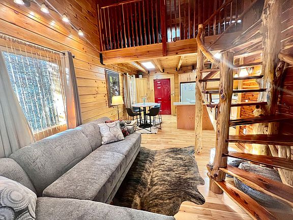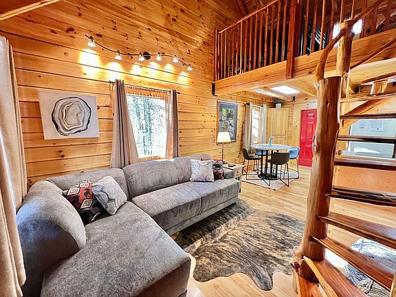 Nestled in the heart of the Daniel Boone National Forest, Hillside Haven is a hidden gem within Creekview Cabins. This newly constructed cabin offers a serene escape with its masterfully designed central log staircase and spacious loft area. Accommodating up to four guests, the cabin features a private bedroom with a queen bed, a loft with another queen bed, and a full bathroom. Step out onto the covered porches, adorned with bistro lights, and enjoy the large back porch with a hot tub overlooking the firepit and grill area. Inside, you'll find a fully equipped kitchen complete with a standard coffee maker, grinder, blender, and microwave. The dining area is furnished with ample barstools and chairs, perfect for gathering with family or friends. Relax in the living spaces, each equipped with a smart TV, and enjoy the comfort of fresh linens and towels provided for your stay. Firewood is available for purchase on-site, and parking is limited to two vehicles. Additional vehicles must park at the local park and ride. Trailers are prohibited. Hillside Haven is situated on a 150-acre privately owned property, offering exclusive access to marked trails, rock climbing crags, caves, and waterfalls. Located just minutes from Natural Bridge State Park and the famous Nada Tunnel, this cabin is central to all the activities Red River Gorge has to offer. Enjoy the convenience of being steps away from the Red River Rockhouse, a local restaurant known for its delicious New American cuisine. Check-in begins at 4 pm and check-out is at 11 am. Arriving early or departing late will incur additional charges. Smoking is permitted outside only, and no pets, events, parties, or large gatherings are allowed. A minimum fee of $350 per pet will be charged for any pets brought to non-pet-friendly cabins. Surveillance cameras are present on the property for security purposes. Be aware that weather conditions or power outages may occur, and while the hosts will assist, they are not responsible for issues beyond their control. No refunds are provided for hot tub malfunctions, but every effort is made to keep them in perfect working order.