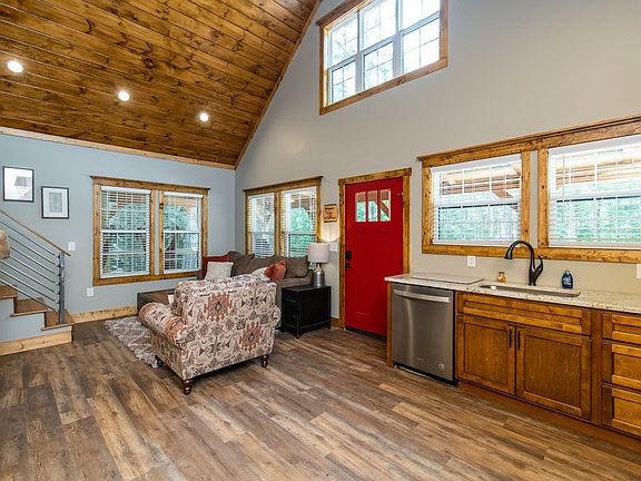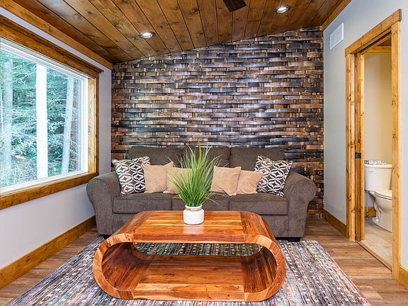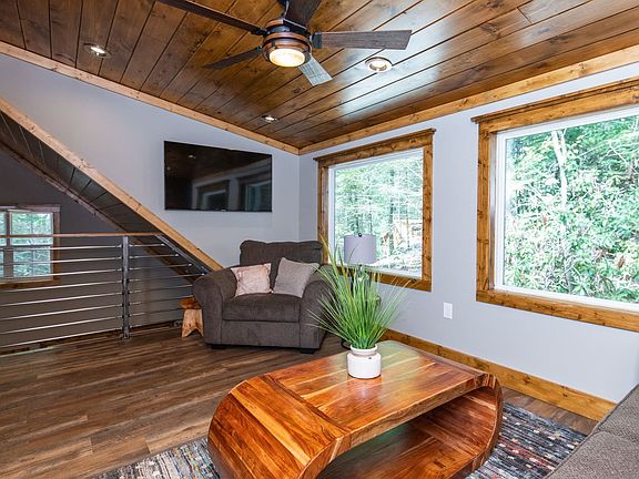 Welcome to the heart of nature at Angel's View, a 2-bedroom, 1.5-bath newly constructed mountain cabin designed specifically for lovers of the outdoors in Kentucky. Resting atop the Creekview property, this cabin offers over 150 acres of amazing Red River Gorge hiking trails, climbing routes, mountains, waterfalls, creeks, and more. This woodland cabin, completed in July 2020, sleeps 6 guests and features a covered wraparound porch with outdoor furniture, sitting hammocks, and a private hot tub, making it the perfect retreat for friends and family. The cabin boasts a fully equipped kitchen with a standard coffee maker, blender, and microwave, making cooking easy and convenient. Gather in the living room on the plush furniture and enjoy your favorite movie on the flat-screen satellite TV. Serve up a savory meal at the dining table with seating for 6 and beautiful views of the trees outside. When you're not outside exploring, head out to the porch to relax in the outdoor chairs and hammocks or rejuvenate in the bubbly hot tub. Fresh linens and towels are provided, along with essential starter packs to make your stay easier. Firewood can be purchased on-site, which is self-service and self-pay. Limited parking space is available, and vehicles exceeding two will need to park at the local park and ride and carpool to the cabin. Trailers are prohibited. This wonderful cabin is part of Creekview Cabins, a 150-acre slice of Red River Gorge, KY, centrally located just minutes from Natural Bridge State Park. The area offers marked hiking trails, bolted climbing routes, creeks, waterfalls, caves, cliffs, and more. Just minutes away is the famous Nada Tunnel entrance to the Red River Gorge, with countless hiking trails, fishing, kayaking, swimming, rock climbing, and bird-watching opportunities. Experience history at Natural Bridge State Resort Park, only 5 minutes away, featuring a million-year-old sandstone arch. The cabin should be accessible with a 2-wheel drive vehicle as the steep incline has been paved. Check-in begins at 4 pm and check-out is at 11 am. Arriving early or departing late will result in additional charges. No smoking is allowed inside, and no pets are permitted. No events, parties, or large gatherings are allowed. Must be at least 18 years old to book. Additional fees and taxes may apply. There is camera surveillance on the pole barn facing the roadway leading to each cabin and on the well house facing the pole barn. There is also camera surveillance at other cabins on the property.