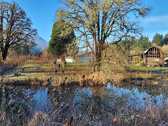 Beautiful farm with nicely remodeled 4 bedroom home. New floor coverings, interior paint, landscaping. Old irrigation rights, excellent garden area & 33+ fruit trees. Enclosed 50'x40' shop w/concrete floor and finished, heated office plus 2 bay. Pasture, historic two story barn, rustic 3 bay 42'x24' equipment shed & 28'x27' tall carport. Professional pig barn 60'x32' could be converted to shop or barn. Conveniently located to both Eugene & Roseburg. 7.5 AC.