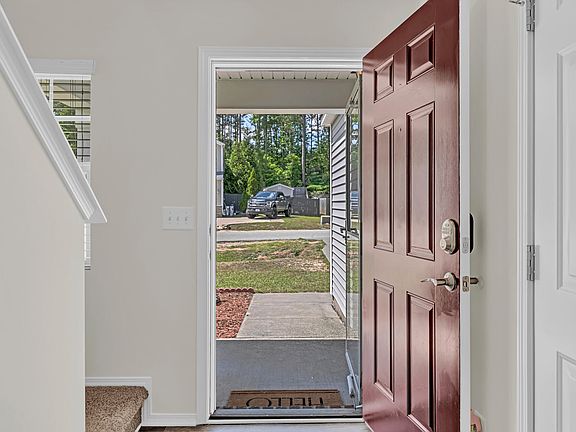 Adorable, 4 bedroom home, in a great location, with low HOA...Can it get any better than that? You enter the home into a bright and cheerful main foyer, greeted by newer LVP flooring that flows seamlessly into the open concept family room, dining room and kitchen. This kitchen is an absolute dream! There is so much counter and cabinet space, it makes hosting gatherings and prepping family meals so easy. A brand new sliding back door opens up to your private fenced backyard and patio and the new door lets in tons of added sunlight! But wait, there is more on the main floor! A 4th bedroom or office, with walk in closet creates a flexible space with lots of potential. As you travel upstairs, the staircase is flanked by windows, sun drenching the bonus loft with tons of natural light. The primary suite is an oasis of its own. The primary bath has a dual sink vanity, large garden tub/shower, linen closet and large walk in closet. On the second floor, you will find 2 more bedrooms, each with lovely natural light and spacious walk in closets. The large laundry room is conveniently located upstairs between all bedrooms, and has shelving for linen storage, making laundry days a breeze! Did I mention location? Just a hop and a skip from I-87, you are at an arms reach to everything you need! Less than 20 mins to Downtown Raleigh, 30 min to RDU Airport, 10 min to Hwy 64 Knightdale for all of your shopping needs and 10 min to Publix at Wendell Falls! This home was just freshly painted top to bottom, washer and dryer are included, HVAC was installed in 2021 and hot water heater is from 2018. This home is turnkey, all it needs is YOU!