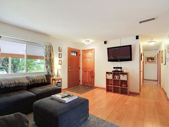 A wonderful home at an affordable price, this is your opportunity to move into a beautifully and thoughtfully remodeled home. This home features a kitchen that has been gutted down to the studs and tastefully redone including: custom full height cabinets, high end stainless steel appliances, custom built oak banquet provides extra storage and bamboo floors with sound deadening cork under-layment that flow into the open main level. Throughout the main you will find solid wood baseboards/casings and solid core custom doors. Both bathrooms have custom tile showers/baths. The custom closet organizing system in the master is sure to be a hit. The combination of the attic fan and evaporative cooler keep you cool in the summer and the large lot provides lots of outdoor space to enjoy and the garden is pesticide free. Pride of ownership shines in this home from the new custom front door to the stain master carpet in the bedrooms, seamless gutters, and newer water heater. This is the one