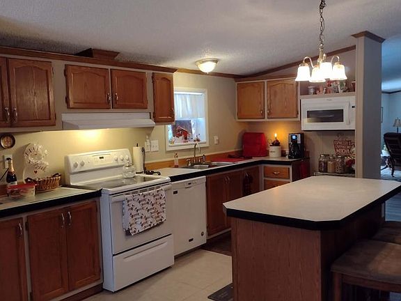 Great views and tucked back away from the road. This 3 bedroom 2 bath manufactured home has been well maintained. It features a family room with sliding doors to outside, a living room with a wood burning fireplace, central air, all appliances, and 2 car detached garage with 220amp service. Pellet stove negotiable.
