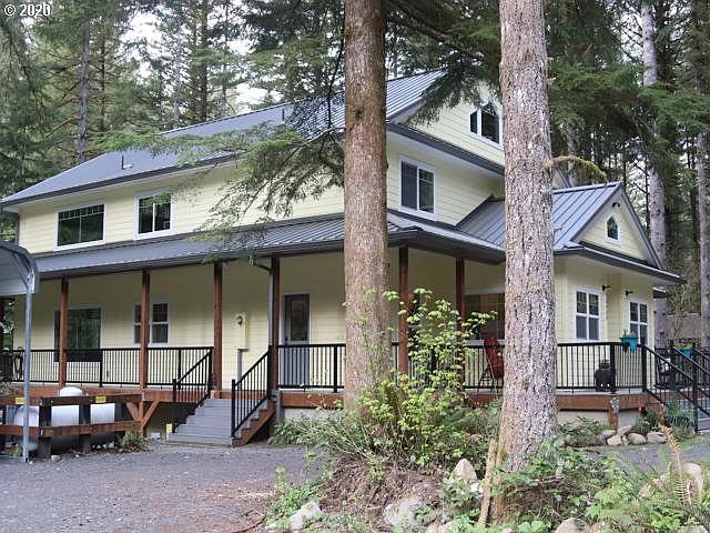 Gorgeous and private custom home right on the E Fork of Lewis River located on a private road. Knotty hickory cabinets & natural stone floors thru out downstairs. Central vacuum system, gas and propane fireplace, 12 mm wood laminate wood in great room, master bedroom on main with lots of storage are just some of the features of this stunning home. Large upstairs has loft and 2 bedrooms and bath. 3rd floor bonus room. Walk right outside the stunning, covered deck to the Lewis River!