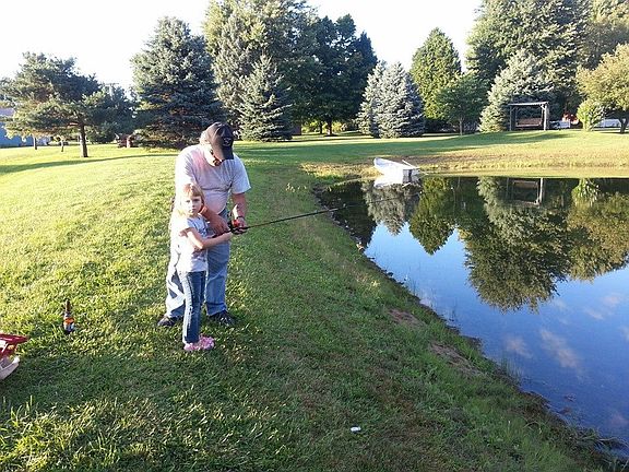 Brick ranch that sits 100 yards off the road, 3 bedrooms & 1.5 bathrooms with a beautiful 2 acre lot which includes a 1/4 acre fish filled pond & plenty of tree. Nice view from the dinning room & back deck. The 4 car pole barn is insulated, natural gas furnace, concrete floor, front & rear roll up doors. Great for work & storage. It also has a concrete driveway with apron for lots of parking & easy turn around. Dogs not included!
