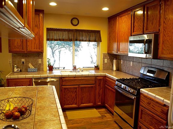 Great home located on an oak studded lot with great views of Stallion Springs. Home has had some updating done,including painting and new tile flooring. Wood burning stove to keep you warm on those chilly winter nights,fenced backyard and plenty of room for a workshop and RV parking. Watch the sunsets or enjoy the in ground fire pit from the back patio area. With only a few houses around, come feel the serenity this property offers.