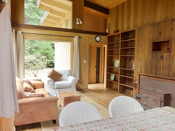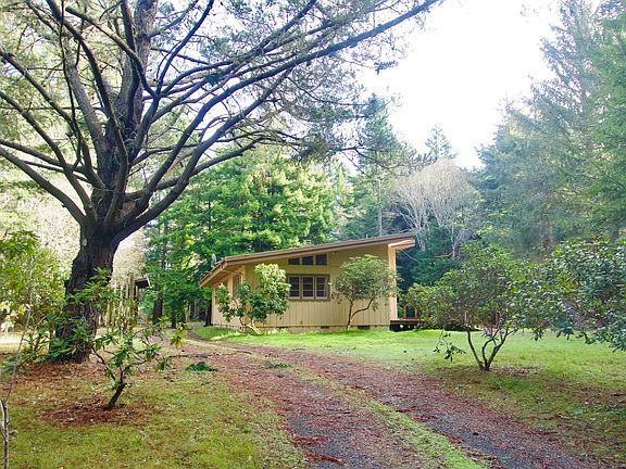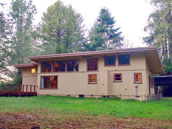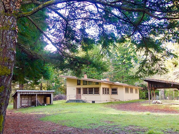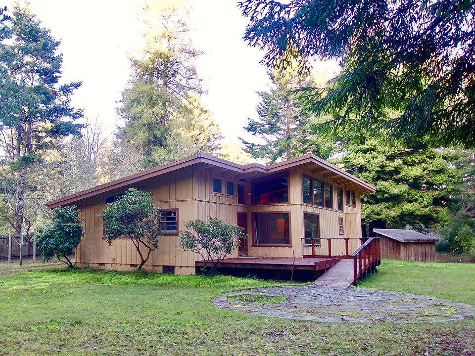 Nothing says Cool Digs like a Midcentury Modern home with it's interesting angular lines, real maple paneling and many windows. Built in 1951, this hip pad has been mostly left intact with almost no cosmetic changes. The overall style has a minimalist aesthetic. Large windows and built in bookshelves in livingroom. The bonus family room has a Kodachrome view of redwoods. New septic system was recently installed. There's a reserved easement for a walking trail that crosses the back part of the property to the Skunk Train tracks below. You'll be made in the shade in your swanky setting-near town, yet decades away! 360 Virtual Tour in photos.
