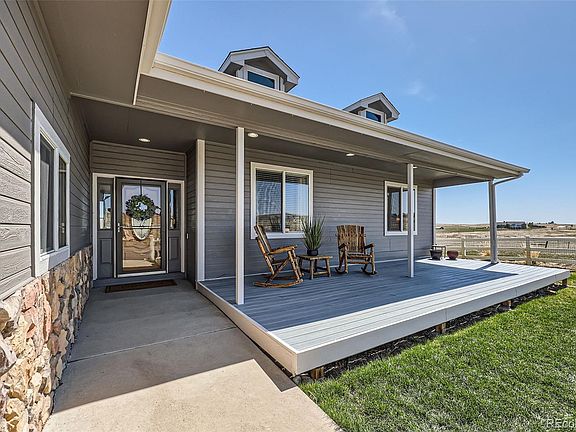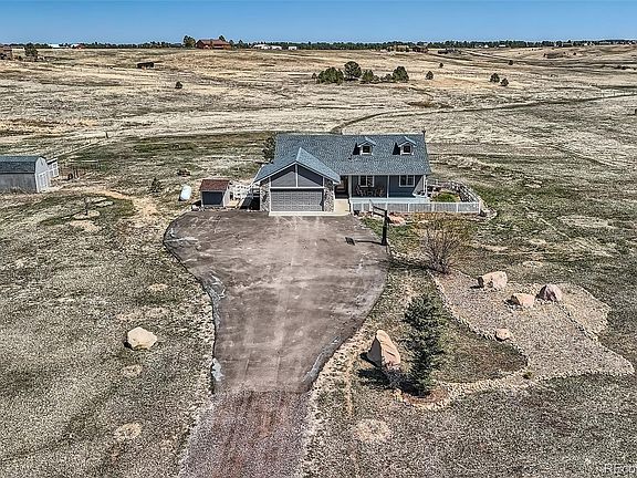 Longing for acreage where you can settle in and build the life you've dreamed of? Presenting 30402 Chisholm Trail in Elizabeth, Colorado - Your next chapter in life awaits! Just shy of 10 acres, this property holds the promise of space to explore freely - and without the presence of an HOA, you truly are free! The home is nicely tucked back - away from the road. Outdoor spaces include the picturesque front porch, rear upper deck, expansive concrete backyard patio, white picket fenced area that encompases the front and rear irrigated yards, and of course... your own established chicken coop. A lovely pocket of naturalized, established pine trees sits at the rear of the acreage, setting this piece of land apart - and a seasonal pond adds to the ambiance while setting the stage for the music of local songbirds and frogs. While the acreage itself is reason to boast, the interior of the home is nothing short of impeccable. The first floor of this home holds an expansive and updated kitchen, a separate dining room to host gatherings/meals, and a great room complete with a gas fireplace. The primary bedroom's wall of windows overlook the back acreage - absolutely stunning and serene! An updated hall bathroom, secondary bedroom, and main floor office space that is flexible for use round out the first level. Downstairs in the fully finished walkout basement, the large great room is the ideal space to hold movie or game nights, a crafting area, exercise equipment, etc. Three additional secondary bedrooms, a beautiful bathroom, and a large utility room that hold the new washer and dryer make excellent use of the full square footage. Rest assured, each space inside this home has been well cared for - providing peace of mind now, and for years to come. Don't miss the 3D walking tour to explore the floorplan and living spaces in detail!. **Call Listing Agent At 720-644-9164 For Additional Information**