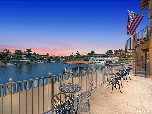 Experience unparalleled luxury in this HIGHLY UPGRADED 5 bedroom, 5.5 bathroom waterfront masterpiece spanning 5100 sq ft with an ADDITIONAL 2400 sq ft and an ELEVATOR goes to all 3 floors! This is everything you’ve been looking for! BRAND NEW AC & HEATING SYSTEM, FULLY PAID OFF SOLAR, PROPANE, RV GARAGE with storage, crown molding, beautifully designed arches and arching door ways, heat & glow fireplaces, soaring ceilings, all high end finishes, 3 decks with retractable awnings, and ALL bedrooms have a private bathroom; too many upgrades to list enrich every corner. Enter through the custom double doors to pure LUXURY! The grandiose front entry opens to a DUAL STAIRCASE and an expansive open living room with a propane fireplace, gorgeous views of the lake, eating area, formal dining room, a DOWNSTAIRS bedroom and bath, currently being used as an office). The kitchen is a cooks dream boasting upgraded appliances, a propane Thermador 6-burner propane stove, built-in espresso machine, dual ovens, warming drawer, pot filler, dual door dishwasher, center island with prep sink, bar top seating and more. There’s a designated bar room with a private fireplace that sets the scene for entertaining. Each bedroom is an ensuite, gorgeous water views and a different style bathtub for each room along with mirrored closets and closet shelving! Very easily dual masters (currently being used as a library). The primary suite is a retreat in itself with a fireplace, private patio, wet bar with fridge, extra large closet with a sitting bench and built-ins, and a spa-like bathroom featuring floor-to-ceiling travertine, a circular spa tub, and a dual-entry open shower. With a 2-car garage plus an enormous RV garage, this home accommodates all desires. Outdoors, enjoy multiple massive decks with stunning views, an outdoor kitchen with BBQ island, sink, 3 burner stations and refrigerator, boat dock with a cover, power and a lift and direct access/stairs into the lake. All powered by fully paid-off solar with 58 panels. Live the ultimate luxury lifestyle while earning substantial yearly solar credits. The grandeur continues with a 2400 sq ft partially finished 3rd floor, perfect for an ADU, massive game room or theater or mother-in-law quarters. Canyon Lake is a 24 hour guard gated community with a private 525 acre lake, premiere water sport lake, 18 hole SCGA rated golf course, Lakefront pool, Equestrian center, tennis & pickleball courts, baseball fields, beaches and parks!