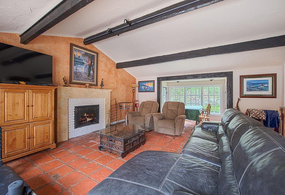 Well located, classic single level ranch style home with peaks and vistas of the 18th fairway of the Shore Course from within the home and views of more fairways and greens from patios and perches on the grounds. Featuring a grand dining hall from front to back, an office or library retreat and a great yet cozy living room with wood beamed ceiling and central fireplace all finished in hardwood floors and rustic tile floors. Generous and private master bedroom suite with pleasant fairway views and office niche, two additional nice sized bedroom one as a suite are all surrounded by patios and garden walkways with private and sheltered places and spaces to enjoy outside.