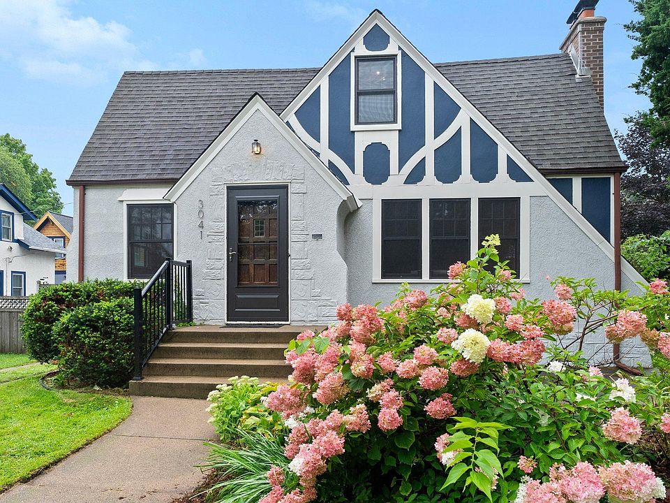 Fabulous 4BR/2BA Tudor located only a few blocks from Lake Nokomis. This home features an incredible upper level primary suite with walk-in closet, private ceramic bath, and adjoining flex room (can use as office, kid's play area, sitting room, or nursery.) A full bath and 3 additional bedrooms are situated on the main floor (each could easily be used as office space, music room, exercise space, etc.) The kitchen has been updated and includes granite countertops, beautiful white cabinetry, and stainless steel appliances. The dining room has charming built-in corner hutches and the living room has a wood-burning fireplace. Hardwood floors enhance the main floor along with lots of fresh paint. The recently renovated lower level includes an amusement room with cozy gas fireplace stove, a laundry room, and plenty of storage space. The large backyard (147'x51') is fenced and holds a double car garage. In addition, the home has newer exterior siding and paint, newer windows, recently rebuilt chimney, newer hot water boiler, and newer hot water heater. All this and conveniently located only 10 minutes to airport, 15 minutes to downtown, 5 minutes to Highland Park village, 4 blocks to Lake Nokomis, steps to Creek, and near miles of bike/walking/running paths.