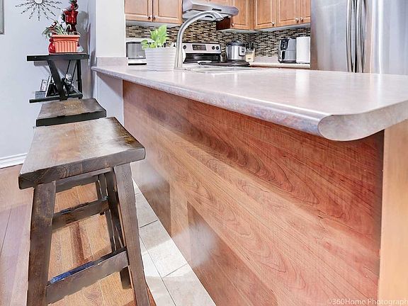 Excellent & Well Maintained 2 Bedroom Stacked Town In Harmony Village.Very Clean House.Great Condition Laminated Through Out The House Open Concept Kitchen, Backsplash. Walk Out Balcony Erom Living And From Bedrooms.Close To Park, Ravine, Community Centre. Ttc At Door Steps.Must See House.....