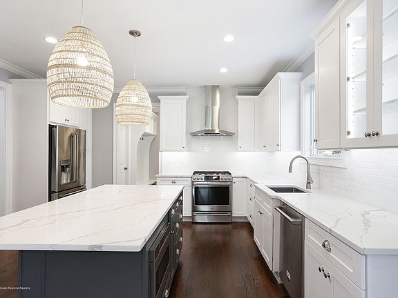 Exquisite new construction in Wall from Monmouth County quality builder CASTLE HOMES! Thoughtful design brilliantly executed w/ high end finishes and a modern open layout w/ beautiful natural light. Stunning gourmet kitchen w/ high end appliances, center island w/ seating, custom cabinets, upgraded quartz c/tops, and custom tiled accent backsplash all open to expansive great room w/ handsome fireplace. Not a single detail overlooked! Beautifully set down a long private driveway, this 5 bed 2.5 bath sea shore colonial boasts decorative moldings and superior craftsmanship throughout. Beautiful luxurious baths w/ hand selected designer tile, vanities, and lighting. Set on a gorgeous level lot with amazing privacy! Welcome home to 3041 Governors Crossing, truly a must see!!
