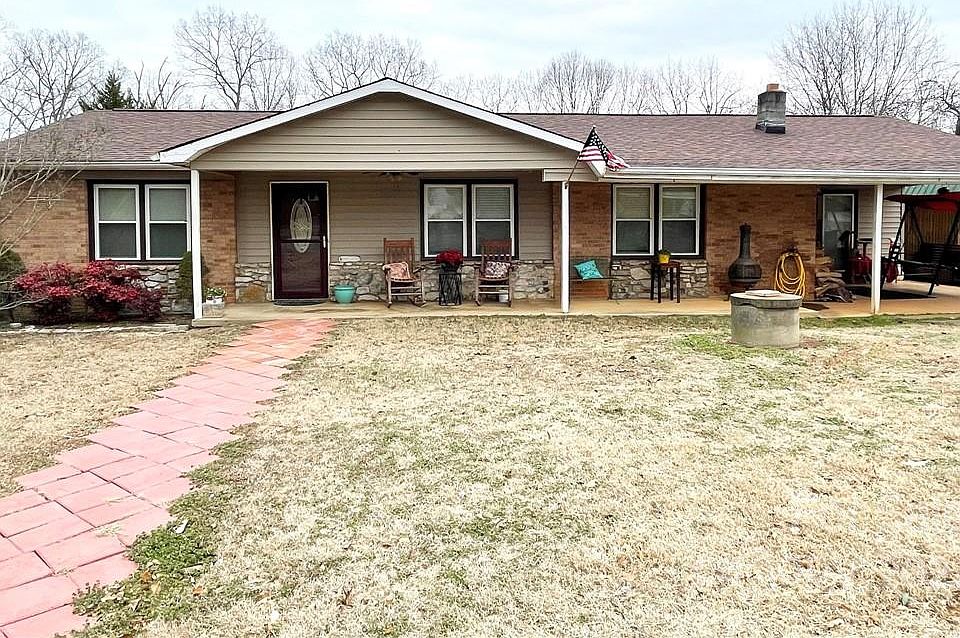 Get Ready For Summer with this HUGE 20x40 In-Ground Pool! 3 BR/2BA, Brick Ranch. Warm and Inviting Den with gorgeous Fireplace, accented by a wall of stone and ceiling with exposed wood beams; Open Kitchen where the Laundry closet is located; Spacious Dining Area with a cozy Woodstove; Formal Living Room has been updated with gorgeous wood floors and new front door & storm door. Primary Bedroom with en-suite bath that offers a single vanity and shower; 2 secondary Bedrooms and a Guest Bath with single vanity and tub/shower. Large, relaxing Front Porch; Attached single carport with an additional metal carport that provides for tons of parking; Nice Wood storage Shed; Pool-side Cabana; Large Metal Outbuilding. Updates include: Guest Bath has new vanity and lighting, Carpet has been replaced, Interior painted throughout, Newer Roof, Vinyl Exterior Trim and Vinyl Replacement Windows, all within the last few years! AGENTS: PLEASE READ REMARKS for further information!!!