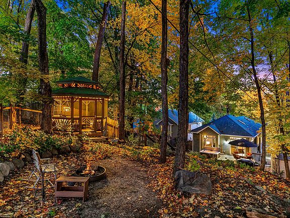 Outside, towering trees provide shade and privacy to flat, usable yard spaces, while the lush setting invites you to relax, entertain, or simply enjoy the peaceful rhythm of nature with frequent wildlife sightings, including deer and turkeys. Go through the sliding glass door in the dining room and find a beautiful deck which leads to the hot tub and a flat, private, fully fenced backyard area with a fire bowl. Head up the outdoor stairs, over the boulder retaining walls, to the top tier and find an inviting firepit and the screened in gazebo with a ceiling fan/light. Supplemental parking with a gate was added next to the garage to accommodate an extra vehicle, boat, camper, or trailer.