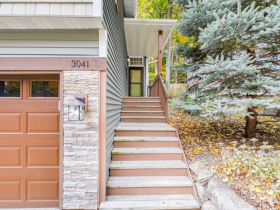The home is essentially a reverse walk-out rambler where the lower level walks out of the front at grade and the upper-level walks out of the back at grade. The main level features 9’ ceilings with an open floorplan and all living facilities, including a beautifully renovated kitchen with custom millwork to include additional storage in the soffit and bench seating, hardwood floors, and a cozy gas fireplace with a natural stone surround. Large windows frame serene backyard nature views, while east-facing windows in the primary bedroom welcome the morning sun. A laundry closet is conveniently located near the two main level bedrooms. The lower level offers a 3rd bedroom, which is currently configured as a family room space, complete with wiring for surround sound, noise reducing insulation and an electric fireplace. Historically, homes with similar layouts in this neighborhood have advertised the lower-level room as a 3rd bedroom. It is a flexible space that can be used as a conforming bedroom, but it also works great as a family room for entertaining, relaxing, or working from home if a 3rd bedroom is not required for your family’s needs. When you enter from the tuck-under 2-car garage you immediately and conveniently encounter a mudroom area with space for a bench, hooks, a key drop, a cedar closet, and a 3/4 bathroom. Recent exterior updates include all new siding, windows (all but transoms and egress which is newer), soffit, fascia, and gutters with leaf covers. See the property fact sheet for more details on updates.
