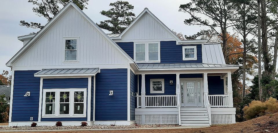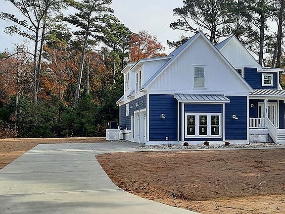This Brand New Coastal Modern Custom Home offers an open concept design with vaulted ceilings! When you walk in the front door of this home you are first greeted by high ceilings in the foyer with a modern chandalier. Beautiful color scheme inside and outside of home giving you that cool beachy feel! Plank laminate flooring throughout the main level. Offering 5 bdrms and 3.5 bths. Master Bedroom offers 2 walk in closets and has an amazing Master Bath with his/her sinks and a Custom shower designed with tile and stone, as well as a jetted jacuzzi tub. All Bdrms are cable ready with remote controlled ceiling fans. Bdrms 2&3 on 2nd level share a Jack & Jill bathroom with a double sink and stand up shower. There is a nice size office/ extra living space that overlooks the foyer. All brand new GE appliances. GE gas stove range with the built in air fryer, GE microwave, GE dishwasher that are all stainless steel. Beautiful Kitchen that has nice Quartz countertops with custom soft close cabinets. Breakfast Nook that overlooks the family room. Living room offers a stunning gas fireplace that will set the ambiance. Beautiful Custom wood and stone fireplace mantle. The back and front porch have composite decking. Tongue & Grove finished ceilings. It's even cable ready on the back porch!!! Also offers ceiling fans and bottom scone lighting on back porch with beautiful views of the woods and wildlife. Custom built outside shower. Large attached two car garage. On demand water heater / Central air & Heat Pump. Give us a call today to schedule a showing and to answer any other questions! Frasca Custom Homes Bill Frasca 252-256-1814