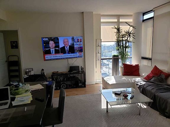 Beautiful 2 bedroom with 2 full bathrooms Condo unit for rent Ryabak Development Floor to ceiling windows, lots of natural light 7th floor (elevator building) Stainless steel appliances including dishwasher Washer Dryer in unit Large master bedroom, as you can see king size bed in the pictures with other furniture and still very spacious, walk in closet and full bathroom. Second bedroom is small, perfect for kids room or office space Large balcony with two entrances from the living room and master bedroom. Central Air Building has a doorman, elevator, gym and roof deck 1 parking spot is included in the rent price (indoor garage) Great location close to everything 1 month rent, 1 month security deposit and 1 month broker fee due at lease signing. This is for January 1st move in. Must have good credit and income. Price is firm