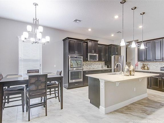 PRICE REDUCTION...$10.900,00 !! Dont miss This immaculate home was newly built in 2016 and features five bedrooms, with 2 Master Bedrooms,1 downstairs+1 Upstairs WOW!!! Four and a half baths, two large living areas, formal dining area, movie room/bonus flex space and extensive upgrades throughout. As you enter the foyer, you are greeted by a spacious open floor plan featuring a formal dining space, the downstairs living area and an eat-in gourmet kitchen complete with stainless steel appliances, large island and designer back splash. The first floor also features one of the two large master en-suites providing its new residents the ultimate floor plan flexibility. As you travel upstairs you reach the additional living/loft space with a fully functional wet bar, the second master en-suite, three additional bedrooms with walk-in closets, movie room/flex/bonus room and the custom laundry room. The upstairs master retreat boasts two separate vanities, a large soaking tub, separate shower, and a massive custom closet. There is no shortage of storage in this home! The backyard is partially fenced and features a covered lanai, perfect for entertaining".