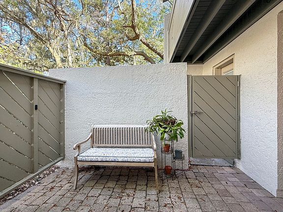 YOUR RESPITE ON THE AMELIA ISLAND PLANTATION. Once inside the private courtyard entry & through the glass front door, you will quickly be drawn to the Amelia Links setting with the expansive saltmarsh beyond. The view is delightful! Experience red sky sunsets from the open patio, or, watch the sailboats in the Intracoastal Waterway from your living area. Features include paver stone exterior surfaces front & back, an open kitchen, granite counters, stainless appliances, completely tiled 1st floor with powder bath on the grade level. The 15' x 13' primary bedroom suite is replete with vaulted ceiling, balcony access overlooking the calming golf & marsh scenery. The secondary bedroom is en suite with balcony access. The upstairs is carpeted. 2019 HVAC. Interior painted 2024. Steps away are 2 swimming pools for the Club Villa complex, and you're a short golf cart or bicycle ride to Amelia's pristine shoreline, plus miles of walking & bicycling trails. Explore nature at its best Kayaking, paddleboarding, back creek fishing, or exploring one of the many pocket parks within this residential resort community. Walker’s Landing, Drummond Park & the Sunken Forest are all convenient & offer the ability to take in the flora & fauna. There is also easy access to the Spa & Shoppes area with boutique shopping & excellent dining available. The serenity both inside and out are cause to schedule your preview today!