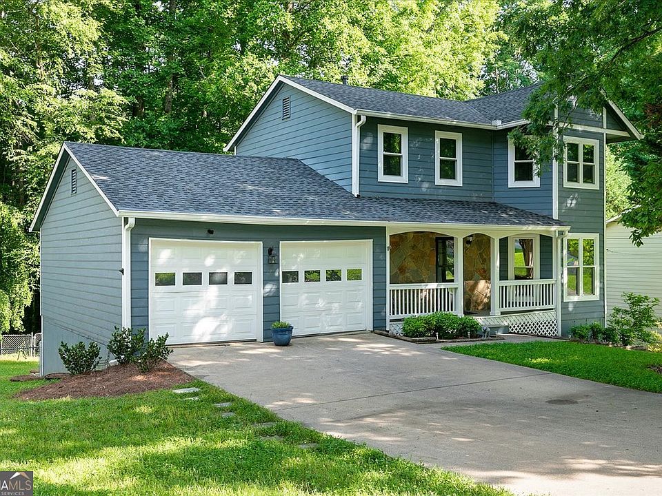 Experience the perfect blend of Southern charm and modern convenience in this immaculate 3-bed, 2.5-bath home, featuring a finished basement, new roof, flooring, paint, deck, windows, lighting fixtures, and a private backyard that is leveled and secured. Enjoy the picturesque curb appeal from the rocking chair front porch, and additional outdoor space includes a generous backyard and a covered patio, perfect for entertaining! The spacious walk-out basement offers two recreation rooms, a bunker, and fantastic storage with built-in shelves! Nestled on a quiet street with easy access to the interstate, parks, trails, and premium shopping.
