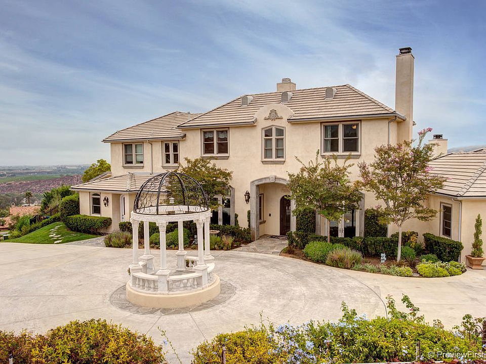 View website: http://30410montrachet.ePropertySites.com - Enjoy the unobstructed panoramic views from every room in this private gated custom built estate perched high in the hills of Bonsall. The sunsets are amazing and unique every time. The owners recently completed a 1 year renovation that kept the old world feel with stone courtyards and fountains while updating the property with the highest quality amenities possible; no expenses sparred. The master bedroom suite offers extensive views, a completely remodeled bathroom including cast iron claw tub, walk in closets with custom cabinetry, and a retreat that can be used as an office or exercise room. The completely furnished self contained guest home has a private entrance, sitting area, kitchen, and bathroom with walk in closets perfect for family and friends, short stays or long term occupancy. The gourmet eat in kitchen is highlighted by an island with eight foot hammered copper counter and professional appliances for the gourmet chef in your family. This home exemplifies elegant entertaining. The 3 sided loggia with stone flooring, fireplace, flat screen TV, fountain, and never ending views. A formal dining room, game room complete with pool table, theatre room, and pool offer unlimited options for entertaining. Both upstairs bedrooms come furnished. The game room comes with pool table and the theatre comes with all of the electronics and sofa. The home also has cat 5 wiring, community gate intercom and security system. Situated on 2.42 acres of meticulously manicured and professionally designed landscaping that offers privacy and serenity. This home will take your breath away.