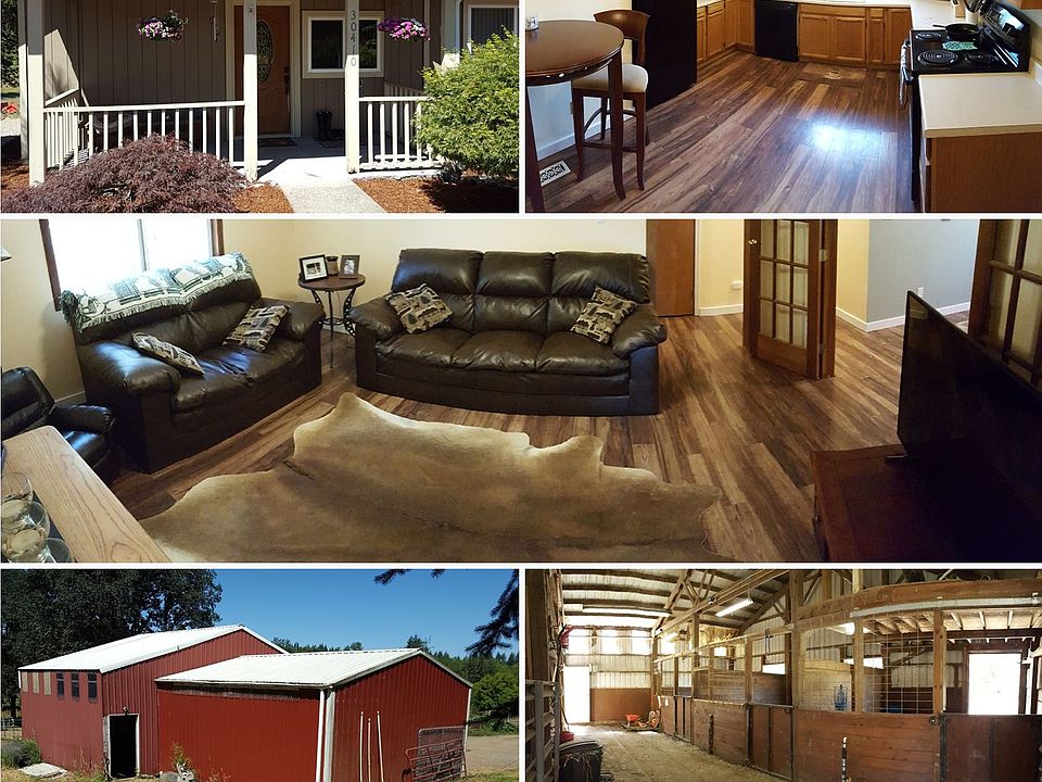 Great Horse Property! 5 Usable Acres! 2680 Sq Ft Ranch, 1860 Sq on the Main, 600 Unfinished Basement! 3 Bed + Den (4th Bed). 2 Remodeled Baths. BRAND New Roof & Gutters. Upgraded Laminate Wood Flooring, Updated Vinyl Windows. Open Kitchen with Pantry + Eating Area. Big Metal Barn with 3 Dedicated Horse Stalls, Vented & Insulated Tack Room, Hay Lofts. Circular Driveway to Barn for Easy Access. Lots of Cross Fencing. Multiple Outbuildings