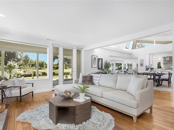 Truly an incredible opportunity to purchase a single level home with "no steps" and a detached ADU overlooking the 11th and 12th fairways of the El Niguel Golf Course. Spanning approximately 3,800 square feet this single level “Mid-Century Modern” home sits atop .34 acres and boasts mature gardens, inclusive of multiple citrus and fruit trees as well as ample patio space that also includes an al fresco dining area with BBQ. The light and bright open living area features a separate living room with book-matched marble fireplace, a central dining area, a fire-place warmed family room contiguous to the kitchen, and breakfast nook. The chef’s kitchen features stainless-steel appliance, wraparound bar counter, stone countertops, white cabinetry, wet bar, dry bar, and wine refrigerators. The primary suite wing offers direct access to a private patio, dual vanities, soaking tub, oversize multi-head shower, and a walk-in closet with custom built-ins. The guest wing features 2 graciously sized bedrooms with well appointed bathrooms. Additionally, there is a detached ADU which offers an additional bedroom, bathroom, living area, and kitchenette type area. Additional features include wood flooring, designer carpet, crown molding, vaulted ceilings, skylights, 3-car garage with workshop area, oversized driveway. This home is located within the Vista del Niguel community of Laguna Niguel and is close to award winning schools and the El Niguel Country Club! This residence is located with minutes of both the Waldorf Astoria and Ritz Carlton resorts, equally close is the World-Renowned Salt Creek Beach with its surfing breaks as well as the Dana Point Harbor and Lantern District with its numerous shopping and dining facilities!