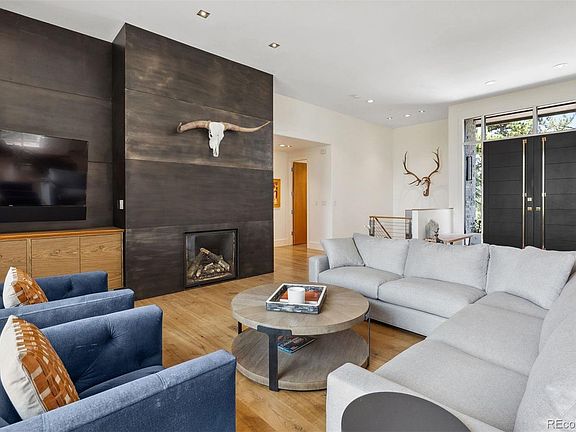 An exceptional blend of luxury and natural beauty, situated within a gated community, this property provides both privacy and convenience, with easy access to Hiwan Golf Club. The open-concept floor plan features high ceilings, large windows, and rich hardwood floors that enhance the flow of natural light throughout the space. The great room is anchored by a modern stone fireplace with rich tones and finishes that exudes contemporary elegance. Adjacent to the living space is the sleek central kitchen, which conveys a high-end modern vibe. This culinary haven is equipped with state-of-the-art Miele appliances and features custom cabinetry, a spacious quartz island, and minimalist design elements that make it both functional and stylish. The luxurious main level Primary suite is designed to be a private sanctuary with high-end finishes and thoughtful details that create a tranquil atmosphere. This serene retreat includes a spa-inspired bathroom featuring a large walk-in shower, a free-standing tub, and expansive windows that fill the space with natural light. In the walk-out lower level, the spacious family room, second office with murphy bed and custom wine room enhances the home’s entertainment options. While the large bedrooms with en-suite baths continue the home’s elegant theme. Outside, an expansive deck provides breathtaking views of the rolling hills and golf course, ideal for relaxing or entertaining guests while the tranquil water feature and fire pit complete the space. Situated in the heart of Evergreen, with easy access to local amenities, gourmet restaurants, and renowned schools. Outdoor enthusiasts will appreciate the proximity to hiking trails, parks, and the nearby golf club, ensuring that the natural beauty of the area can be enjoyed year-round. Whether you’re looking to unwind in a tranquil setting or entertain in style, this home provides an unparalleled living experience in one of Colorado’s most desirable locations.