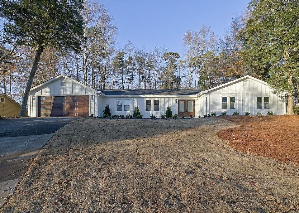 A PERFECT 10! Welcome to this stunning, fully renovated 4 Bedroom/2bathroom RANCH home in the sought after Pope High School District in East Cobb! This spacious, single-level home has been thoughtfully updated to offer modern comfort and style. The open-concept floor plan features a generous living room, dining area, and sunroom perfect for entertaining family and friends. The chef's kitchen is a showstopper with sleek quartz countertops, white cabinets, a stylish backsplash, high-end lighting, and designer fixtures. Both bathrooms have been beautifully designed with gorgeous tile and finishes. New floors, fresh exterior updats, and stylish touches throughout make this home truly turnkey ready! The two car garage conveniently opens to the mudroom/laundry space for added functionality and practicality. Step outside to your large, private bakcyard--ideal for relaxation or recreation. Enjoy space, single-level living, style, and comfort all in a top rated school district with no HOA! Call today for your private showing!