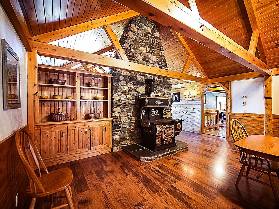 - Cathedral Ceiling(s), Ceiling Fan(s), Dining Area, Hearth, Kitchen/Dining, Natural Light, Indoor Storage
