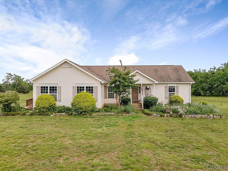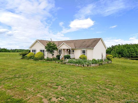 If you're looking for both privacy and convenience this is it! Only minutes from Blackstone, Ft Pickett & Crewe, this home has many great features. Open concept, with foyer leading to a living room with original wood floors. The dining room has a large window to bring in natural light and more wood flooring. Spacious kitchen with plenty of counter & cabinet space with ss appliances. Primary suite features walk in closet, ensuite bath with double vanity, stand alone shower and soaking tub. Adjacent to the primary bedroom is the laundry room with pantry and linen closet. Two additional bedrooms & full bath are located on the opposite side on home for privacy. There is a full deck across the rear of the home overlooking the pond & fenced pasture. Unfinished basement offers so many options! The barn has two stalls on one side of the barn and three stalls on the other side. The three stalls walk out to the large pasture. The other two stalls walk out to a small pasture. Wide aisle way for driving vehicles. There is a large area for putting riding mowers. Nice large tack room insulated and sheet rocked. There are overhangs on both sides for keeping tractors, hay etc.