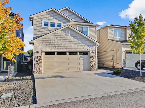 Wonderful 4 bedroom 2.5 bath home with large fully landscaped yard, 10x20 covered rear patio and No rear neighbors. All yard maintenance included. Home features 9' ceilings downstairs, upgraded granite countertops in kitchen and bathrooms, S/S appliances, laminate floors, upgraded Hunter Douglas shades and upgraded cabinets. Home is next to the Tuscany subdivision and within walking distance to Siena Elementary School. Great location with quick interstate access to I-84. Large master bedroom with walk in closet and double vanity. Huge 15x12 bedroom #4 or bonus room, you choose. Double vanity in second bath. Large upstairs laundry room with huge counter and closet. Large two car garage with taller ceilings and built in shelving. Easy water, not salt, water conditioner (Paid $2,200) no salt or maintenance required. Home is very clean and well maintained. HOA fees include weekly lawn mowing, regular fertilizing and annual sprinkler blowout.