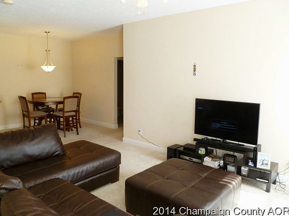 Comfortable condo living in quiet SE Urbana golf course community. 2 BR, 2 BA first floor condo with split floor plan. Large great room with gas log fireplace, 9-foot ceilings, 1 car garage, covered patio, and all appliances. 2 walk-in closets. So much to enjoy - walking paths, ponds, nearby restaurant and convenient to U of I. Monthly fee covers lawn care, snow removal, trash exterior maintenance and exterior insurance.