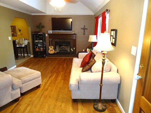 Look with 24 hour's notice, and move in 2-3 weeksafter approved application and deposit received. Great home withhuge fenced yard for rent. Walk in to the living room withhardwoods and a gas fireplace. Kitchen with eat in area connectedwith refrigerator, electric stove and oven, dishwasher andmicrowave. Master bedroom on first floor as well as the laundrycloset. Access the fenced back yard and deck from the hall or thekitchen. Upstairs are the 2nd and 3rd bedrooms, bath, and atticspace (in bedroom #2) plus a wide landing for extra space. Pets ona case by case basis. Tenant to verify schools.