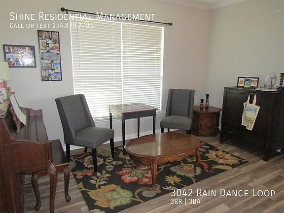 This 2631 square foot single family home has 3 bedrooms and 2.5 bathrooms. This home is located at 3042 Rain Dance Loop, Harker Heights, TX 76548.