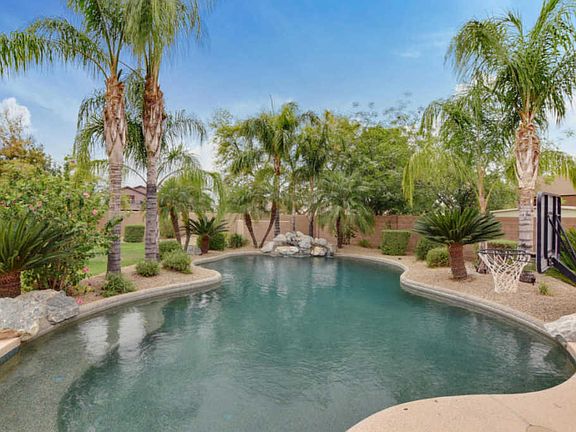 BRIGHT & SPACIOUS 5BD/3BA home w/STUNNING backyard in wonderful Mesa community! Beautiful palms surround the SPARKLING over-sized pool w/water feature! Largest lot in subdivision! HUGE BONUS LOFT over the 3-car garage is perfect for a game room & office! With lg. windows in every room, you won't be lacking for natural light! Kitchen includes island, breakfast bar & plenty of storage. Master bath features extended vanity & soaking tub. Ceiling fans throughout. Needing a cozy retreat? Sit outside on the covered balcony! In back, enjoy a fun day outdoors or entertain guests under the covered patio or out on the lush greens! MESA TAXES BUT GILBERT SCHOOLS! Close to the Riparian Preserve, Phoenix-Mesa Gateway Airport, US60 & Loop 202 fwy. You don't want to miss this!