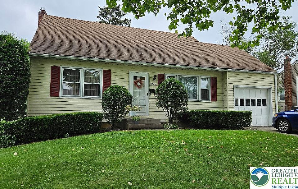 Location, location, location!!! This 4 BR, 1 bath cape is located in the highly desirable East Hills neighborhood of Bethlehem. Minutes to schools, shopping and Route 22. Modern kitchen and bath. Recessed lights over workspace area in kitchen, 42 inch kitchen cabinets offer plenty of storage space, appliances conveyed in their current "as is" working order. Basement is partially finished and perfect as a family room/mancave with dry bar. Work bench and built in storage shelving unit in unfinished area of basement. Sink in basement closet is not used, not connected. 2 wall unit a/c units on 2nd floor and 2 window unit a/c units on first floor are included in the sale. 1 car attached garage, 2 car park pad. Relax on the 23x15 concrete patio. Fenced in rear yard keeps children or pets safe, storage shed. Clear City of Bethlehem Housing Code Inspection, any repairs for financing would be the responsibility of the buyer.