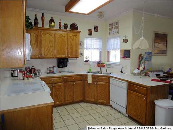 Very nice quaint home for new family or someonw looking to down size. Kitcen has ceramic tile, and tons of cabines (some even have pull out drawers), 1 year old flat top stove, newer microwave, corner stainless steel sink; walk in laundry room. Sen and foyer have wood floorsMaster suite has her and her vanities, his/her vanities, jetted tub, seperate shower with seat. All rooms have ceiling fans. You will absolutely love this yard!! Nice size covered patio with gas fireplace make this a nice area to enjoy outside. SUPER great detached garage/workshop withy boatport that excite any man of the house! Second attic is also floored in the workshop. A/C 2.5 years new. COme visit