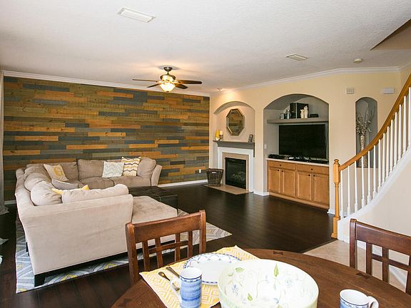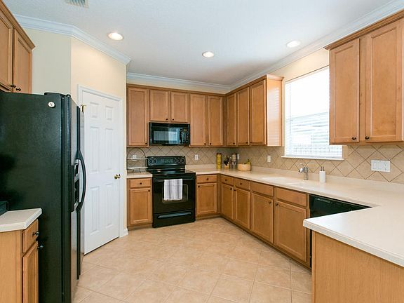 Appealing 2 story home with upgrades, wood floors, screened patio with pavers and attention to other details. 42" maple cabinets and black appliances in eat-in kitchen. Large owners suite with sitting area and tray ceiling. Dramatic 2 story foyer welcome guests to this lovely home with neutral colors and backyard space for a pool. Privacy fence and screened patio. No CDD fees in this golf course community with many amenities. Extremely low water bill due to installation of well for irrigation system!